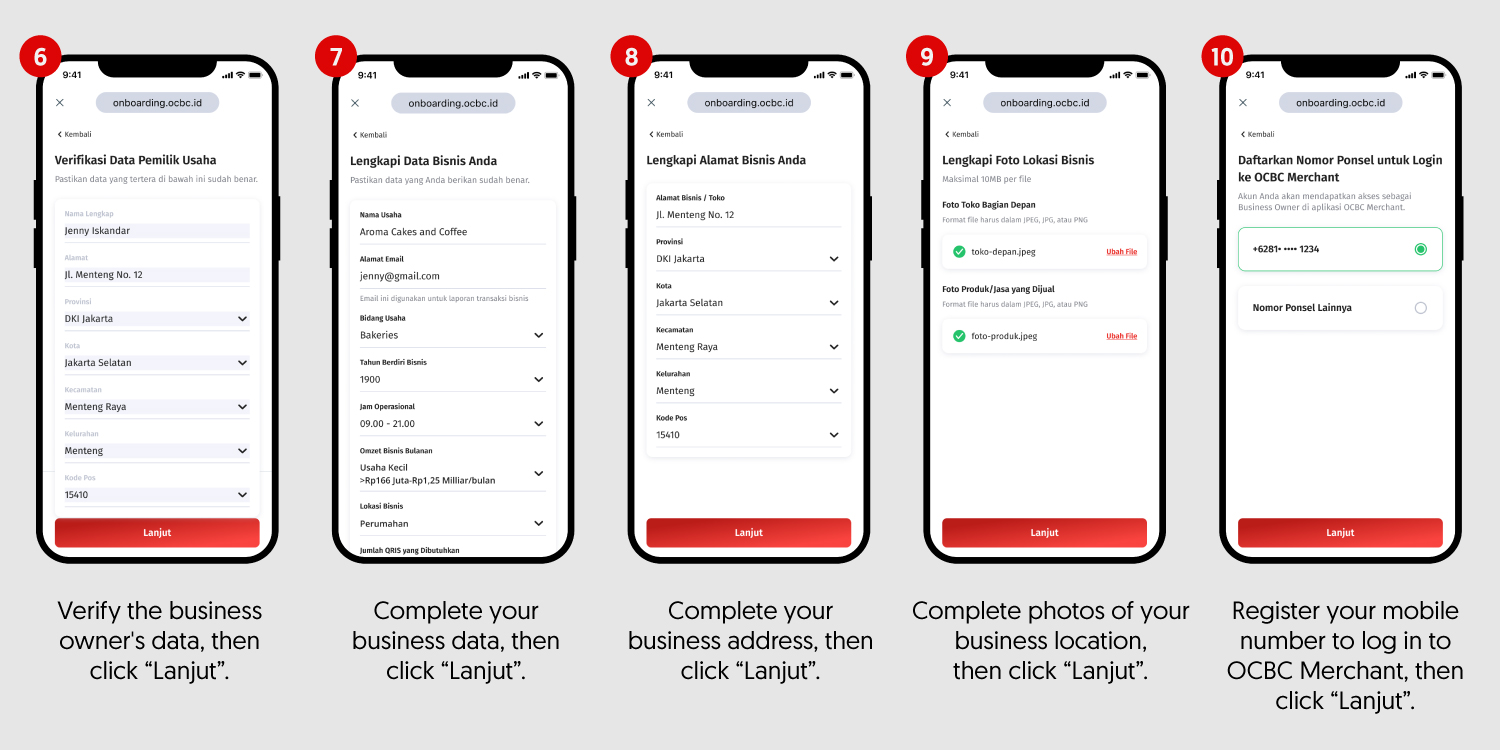 Ensure that the registered NIK has been integrated with NPWP, and make sure that the phone number used to register for OCBC Merchant is the same as the phone number you used when opening your OCBC account, as OCBC will verify the data using the phone number registered in the Bank's system.