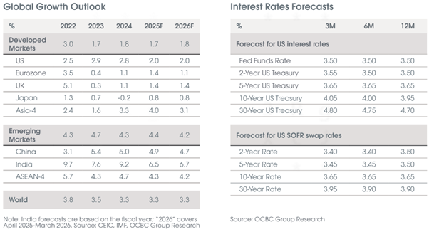 OCBC Group Research maintains its base case for one 25bps fed funds rate cut in 2026 and has pencilled in this expected cut for 1Q26. Thereafter, any additional fed funds rate cuts will probably require inflation to move nearer to Fed’s 2% target.